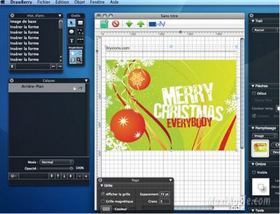 DrawBerry jest narzędziem przeznaczonym do tworzenia grafiki wektorowej w komputerach typu Mac. Aplikacja pozwala na tworzenie warstw, filtrów, dodawanie gradientów, masek itd. Użytkownik może korzystać z różnego rodzaju płócien, kształtów, linii czy tekstu. Można także cofać wykonane czynności i przeglądać historię zmian - służy do tego osobne okno programu. Zarówno projekty jak i narzędzia otwierane są w niezależnych oknach, co pozwala na dostosowanie wyglądu DrawBerry do indywidualnych wymagań użytkownika. Warstwy można mieszać ze sobą na różne sposoby, mogą być także przeźroczyste w stopniu, który wcześniej ustalimy. Za pomocą panelu preferencji można wybierać rodzaj jednostek w linijce (piksele, cale, centymetry, punkty), a także dodawać szablony plików. Te ostatnie przydadzą się jeśli podczas pracy korzystamy z powtarzających się ustawień.